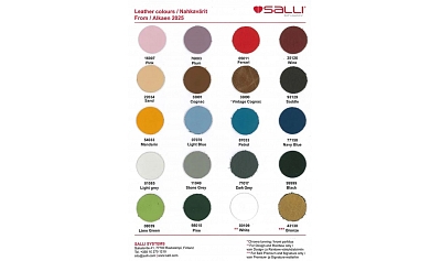Galimi apmušalai: natūrali oda, dirbtinė oda, audinys arba juodas poliuretanas (žr. spalvų paletę)
