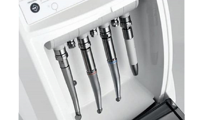 - Turbininių antgalių adapteriai, tokie kaip Cefla, Kavo® (MULTIflex®), Sirona®, W&H® (Roto Quick), NSK (PTL-CL-LED), Bien-Air® (Unifix®).
