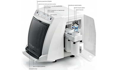 - Valymo ir dezinfekcijos skysčio talpos: po 0,4 litro (autonomija iki 40 ciklų)
